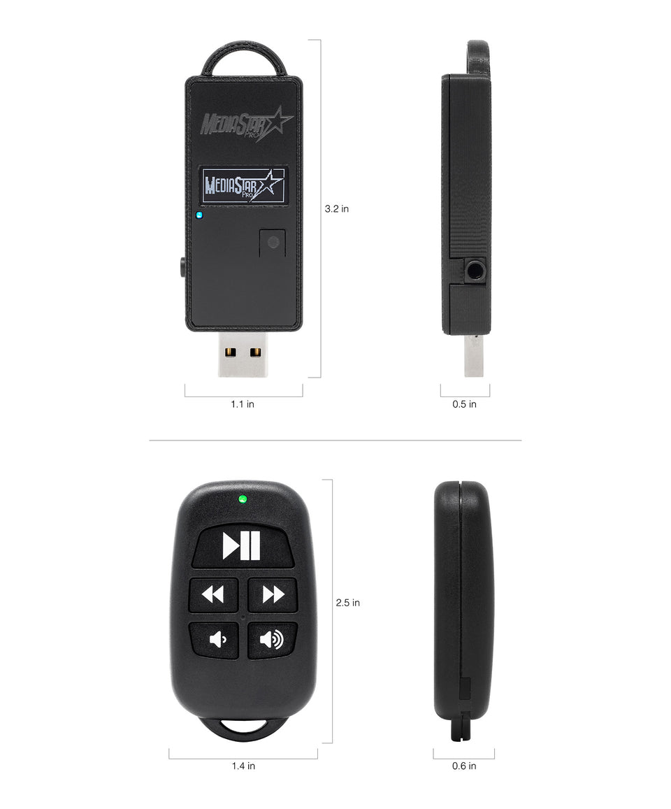 The smallest technologically advanced, long-range wireless USB media remote control system. The hardware can control virtually any desktop, laptop, smartphone, or tablet running MacOS, Windows, Apple iOS, or Android software.